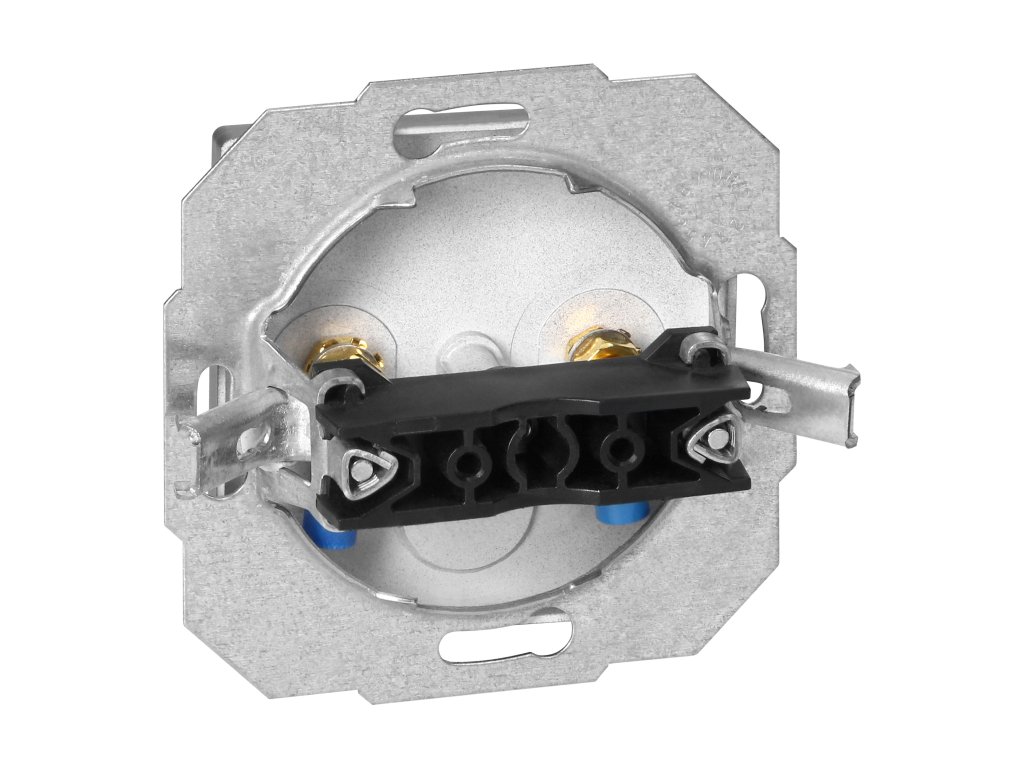Modularna serija s simetričnim sistemom okvirne plošče (za 1-, 2-, 3-, 4-, 5-modul) omogoča montažo izdelka v vodoravnem in navpičnem položaju. Sodobni mehanizem hitrega povezovanja (žice so povezane z njihovim neposrednim potiskanjem v telo) zagotavlja varno in zanesljivo namestitev in odstranitev žic. Vtičnice so opremljene s tradicionalnimi vijačnimi povezavami. Notranja zasnova sponk zagotavlja varno povezavo žic od 0,75 mm? do 2,5 mm?. Močna in robustna mreža montažne plošče ter visokokakovostni samovlečni elementi omogočajo stabilno in varno montažo v škatli. Posebni vzmetni elementi olajšajo prileganje okvirja v ohišje.Enotna vtičnica za zvočnike (modul). Prerez žic za izhod do 6 mm2. Namenjena za vgradnjo v zid. Uporabljati ga je treba v zaprtih prostorih (IP20).