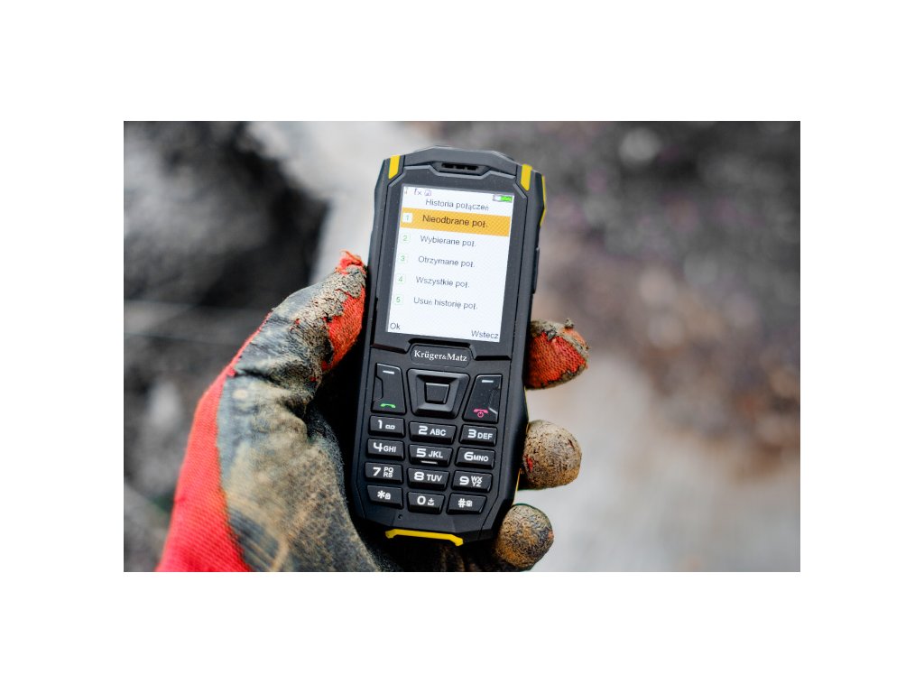 Moč je v preprostostiKruger&Matz IRON 2 je predlog za tiste, ki pri vsakodnevni uporabi dajejo prednost robustnosti naprave pred naprednimi funkcijami in aplikacijami. Zaradi kompaktnih dimenzij se telefon varno drži v roki in omogoča udobno uporabo in komunikacijo.