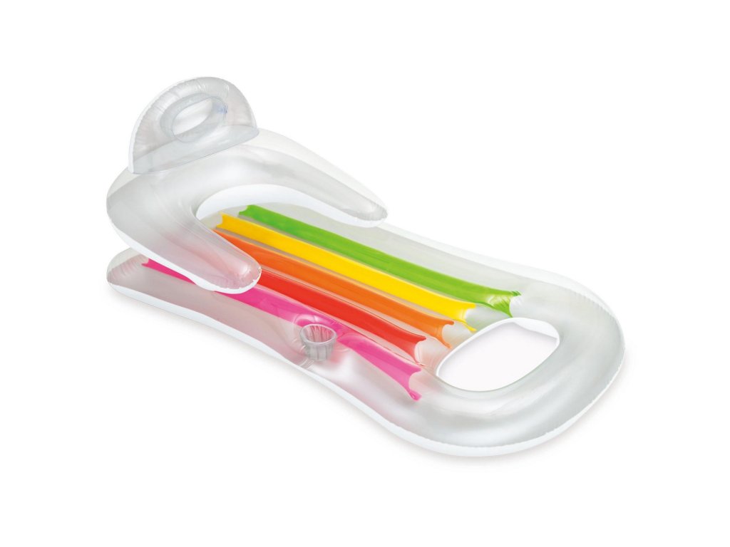 Vzmetnica, ležalnik za sončenje in plavanje 160 x 85 cm ## INTEX 58802## Zagotovite si maksimalno sprostitev! Komforten - idealno oblikovan z visokim naslonom za hrbet in naslonjali za roke, vgrajeni držali za pijačo. Trpežen - izdelan iz močnega PVC materiala, odpornega na manjše poškodbe. Stabilen - zgrajen iz treh zračnih komor z i-beam tehnologijo, kar pomeni konstrukcijo, ki temelji na vzdolžnih zračnih komorah. Z uporabo vzmetnice se boste počutili stabilno in varno! Praktičen - vzmetnica se hitro napolni z zrakom in po potrebi ga prav tako hitro izpraznite - po zlaganju zavzame malo prostora, prilega se v vsak prtljag! Lahko ga uporabljate v svojem bazenu, ga odnesete na plažo ali k jezeru. Glavne lastnosti: ## veliko naslonjalo in naslonjala za roke##_ držala za pijačo##_ i-beam konstrukcija##_ močan PVC material##_ obliž za popravilo v kompletu. Tehnični podatki: ## Dimenzije: 160 x 85 cm##_ Material: PVC##_ Zračne komore: 3.## Koda izdelka: 58802;##Additional parameters