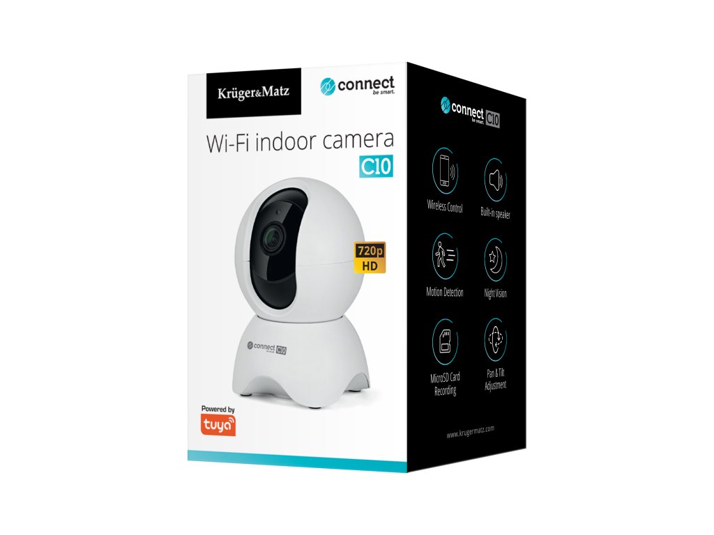Kruger&Matz Connect C10 vam omogoča vpogled v katerokoli sobo v vašem domu. Popolno kakovost slike zagotavlja objektiv z ločljivostjo 1 MPx, ki omogoča prenos slike v ločljivosti HD.