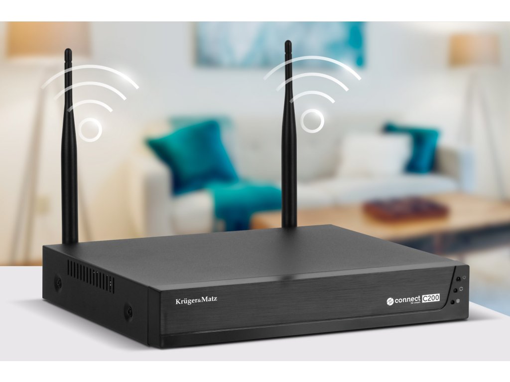 Dobavljeni DVR podpira največjo kapaciteto 4 TB. Ta kapaciteta zadostuje za enomesečno snemanje v visoki kakovosti Full HD. Zahvaljujoč nadzornemu sistemu Kruger&Matz Connect C200 vam ne bo nič ušlo iz pozornosti.