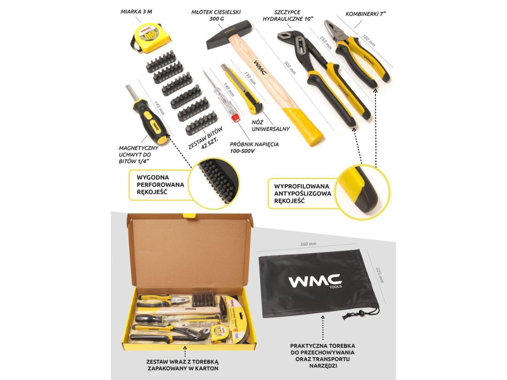 Komplet orodij je bil zasnovan ob upoštevanju potreb vsakega domačega mojstra in tudi profesionalnega "zlatega ročaja". Vključuje orodja, ki omogočajo hitro in učinkovito delo tako doma kot v delavnici. Funkcionalen komplet orodij, ki vsebuje najnujnejša orodja, nujna v vsakem domu ali delavnici.