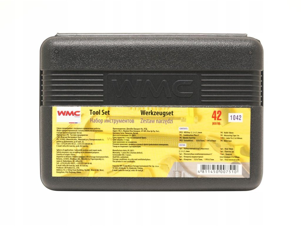 Orodna garnitura 42 elementov znamke WMC je popolna, univerzalna garnitura, ki zagotavlja vse osnovne orodja, potrebna za izvajanje vsakodnevnih montažnih, popravljalskih in vzdrževalnih del v gospodinjstvu, garaži, pisarni ali delavnici.