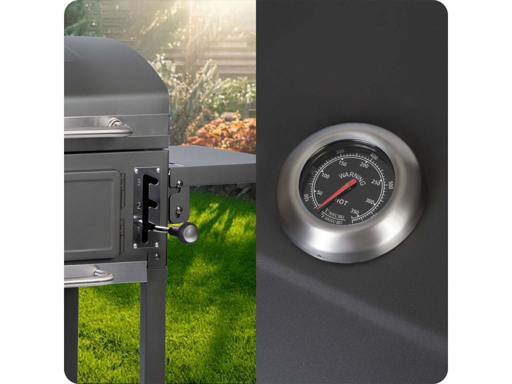 Nastavljivi zračni izpusti: omogočajo nadzor pretoka zraka in s tem regulacijo temperature znotraj žara, kar je potrebno pri dolgem pečenju na žaru.