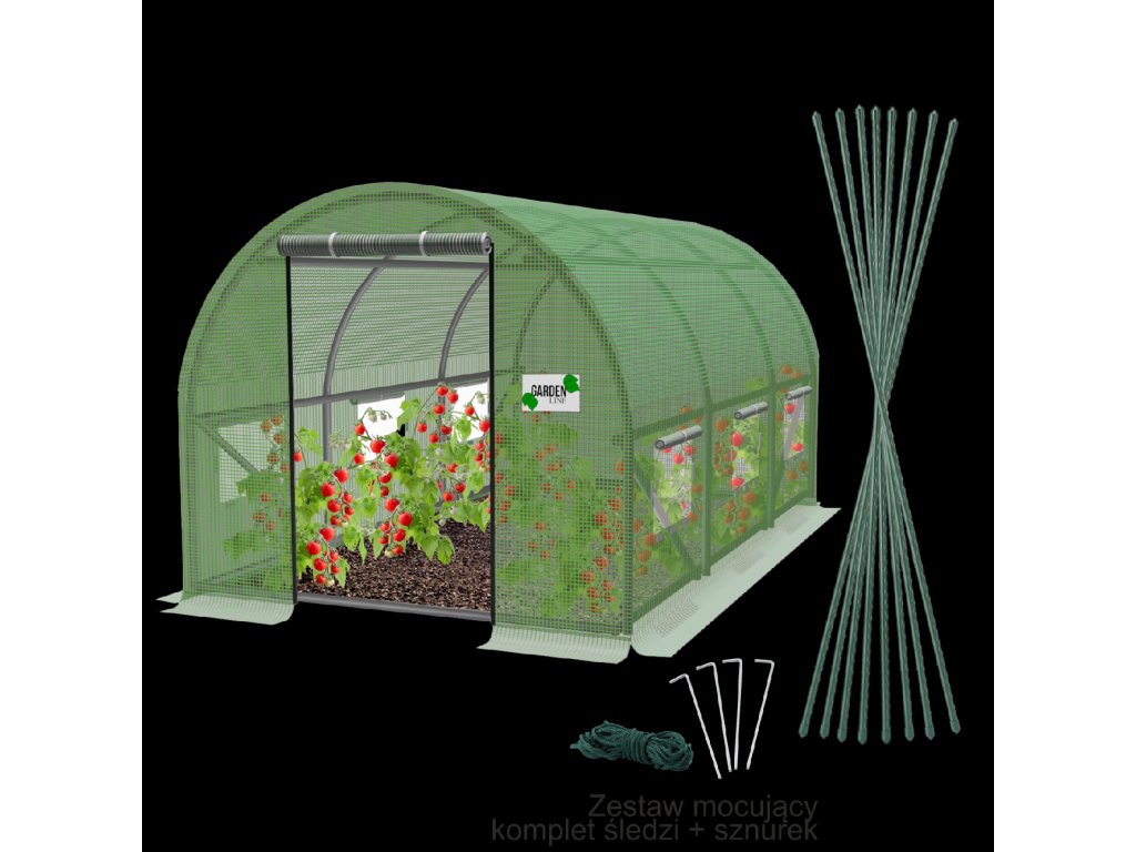 Vrtni tunel 4 x 2,5 x 2 m. Najde uporabnost pri gojenju različnih vrst rastlin v domačih vrtovih. Tunel omogoča začetek gojenja tudi zgodaj spomladi. Ena izmed mnogih prednosti tunela je vzdrževanje stalne temperature znotraj in zaščita pred neugodnimi vremenskimi pogoji, ko je vreme lahko spremenljivo in so noči običajno hladne. Tunel zagotavlja zelo dobre pogoje za razvoj, zahvaljujoč njemu rastline rastejo hitreje in bolj zdravo.