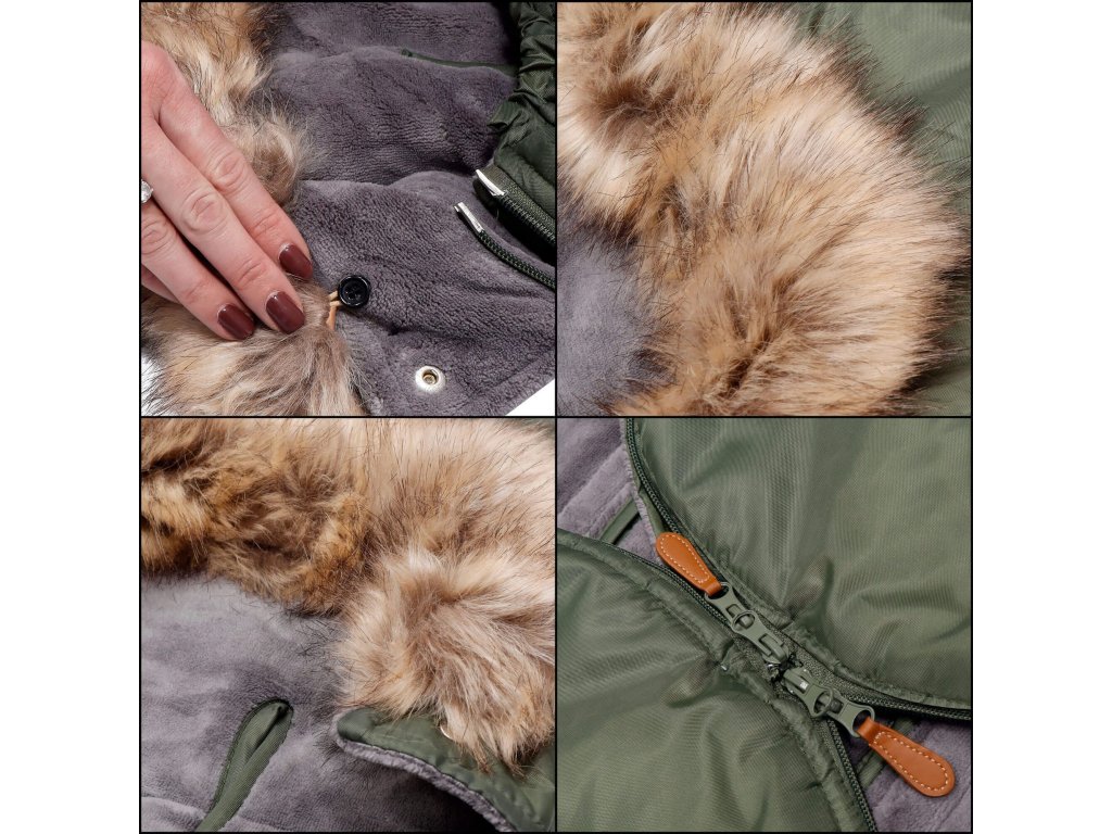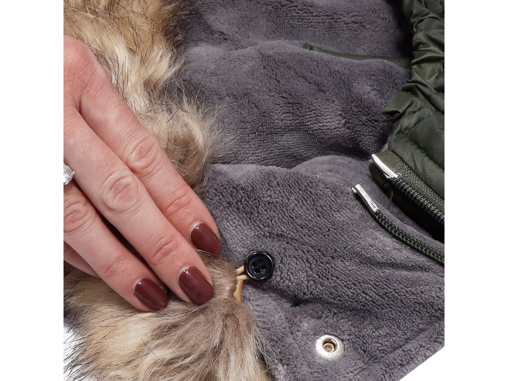 Odstranljivi krzneni ovratnik - pritrjen na kapuco s črnimi gumbi