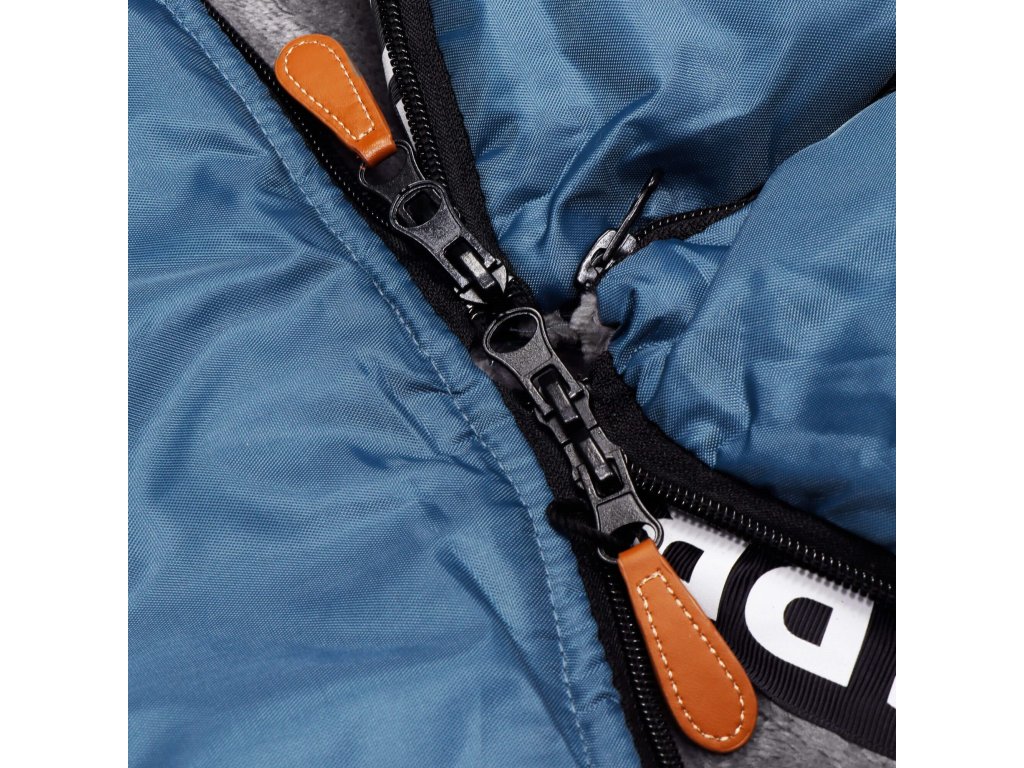 Spalna vreča na zadrgo na sprednji strani na sredini - zadrga, 2 zadrgi: ena zgoraj in ena spodaj + vrvica zgoraj
