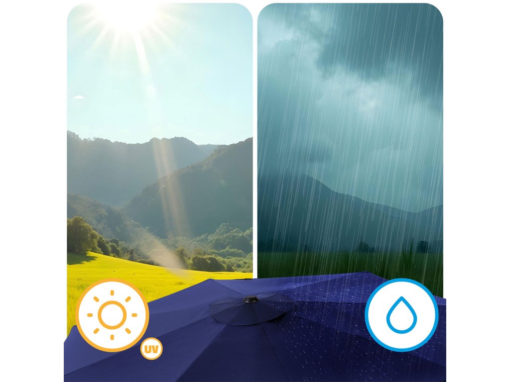 - Dež Nekaj možnosti! Zahvaljujoč vodoodpornemu materialu PE naš senčnik učinkovito ščiti pred vsako kapljo.