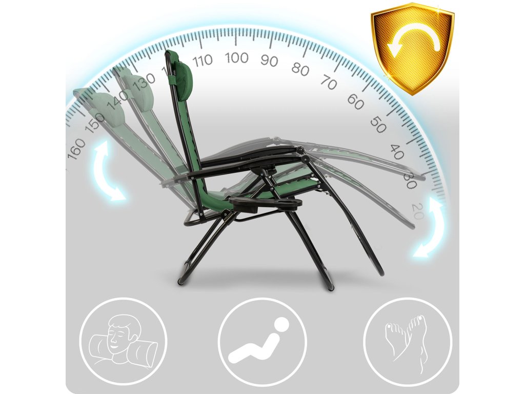 Odkrijte naš zložljiv gravitacijski ležalnik — zasnovan, da vas popelje v stanje breztežnosti in absolutne sproščenosti. Ergonomska zasnova, možnost nastavitve naslonjala in močna izdelava.
