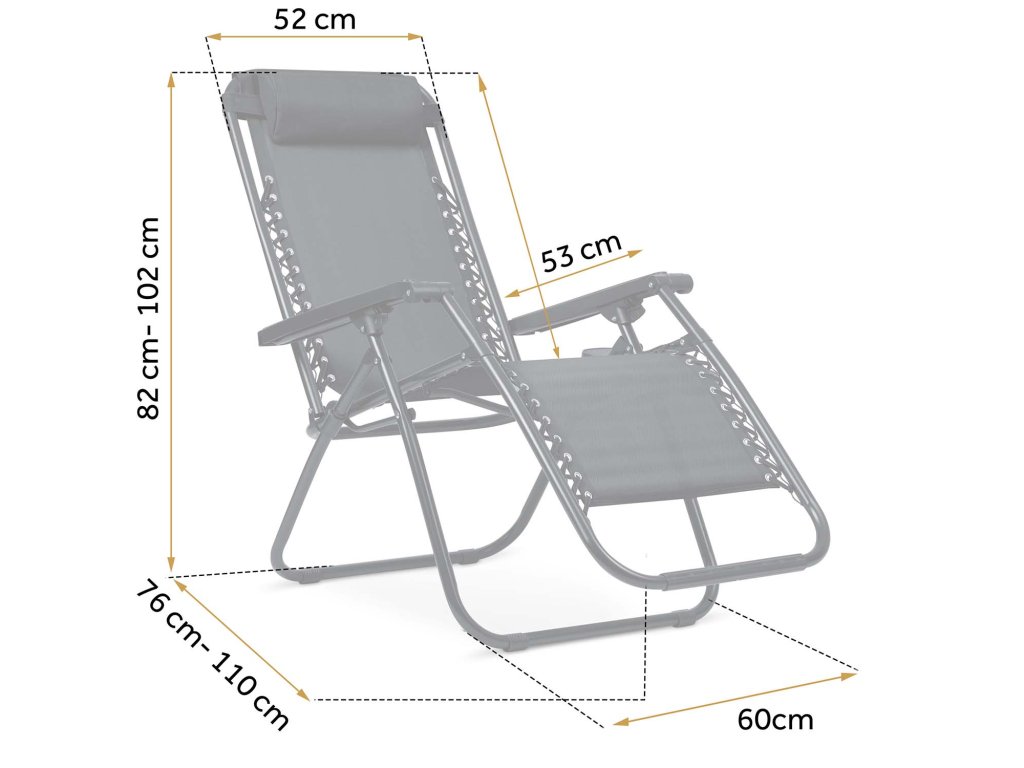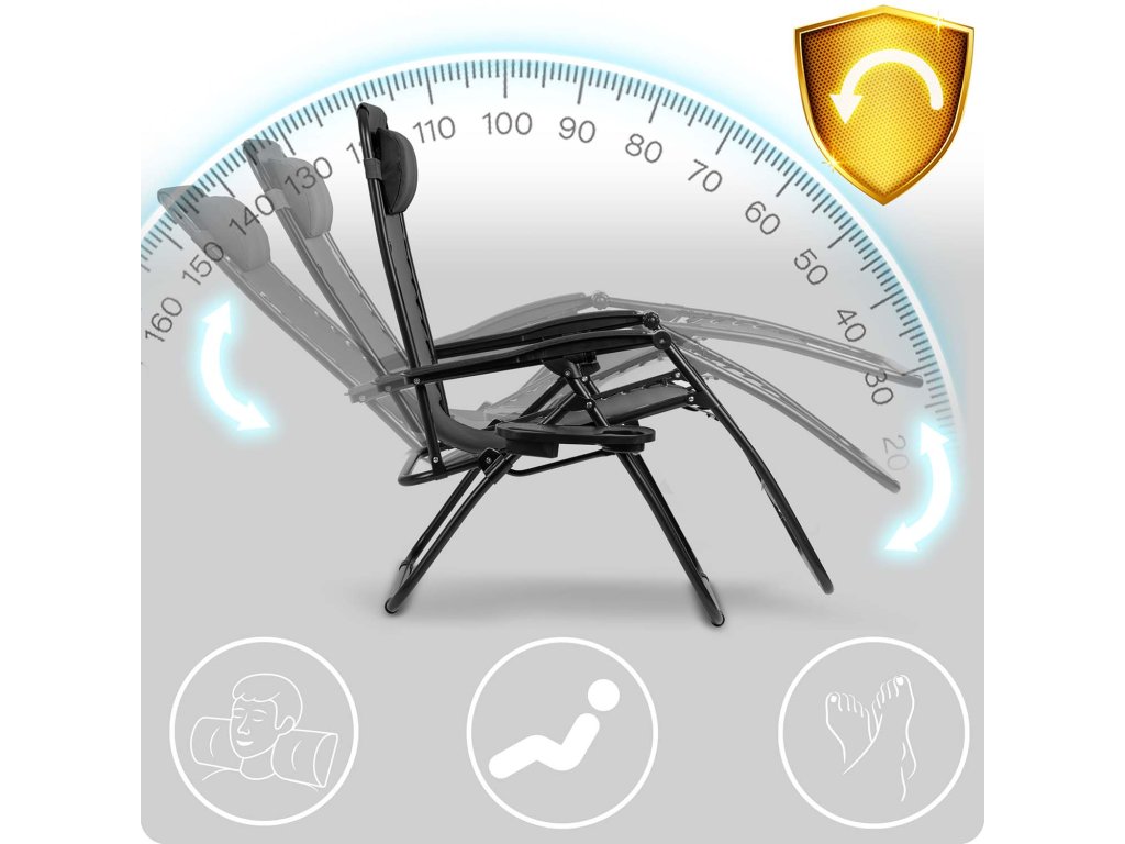Gravitacijski ležalnik z vzglavnikom in mini mizico je naložba v udobje in prijetnost vsakodnevnega počitka na svežem zraku.