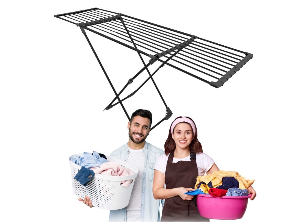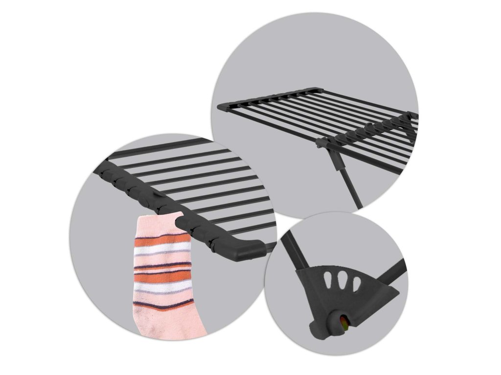 - ročaji za sušenje perila — z obešanjem perila na namenski dodatni ročaji prihranite prostor na stojalu,