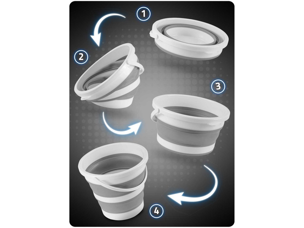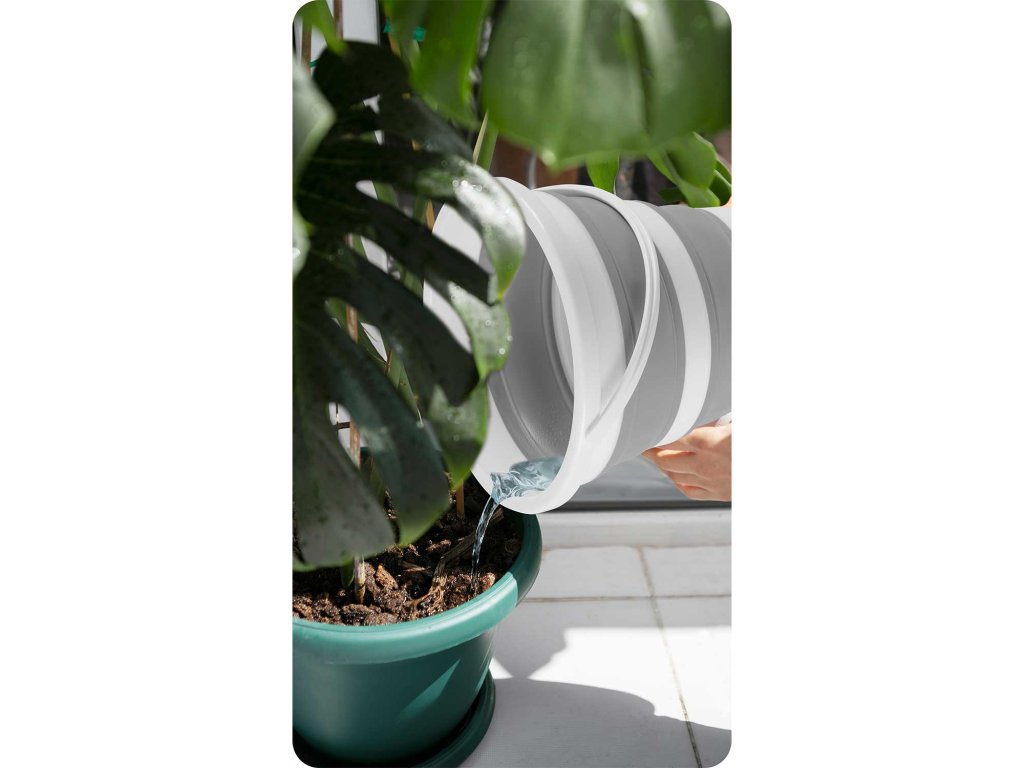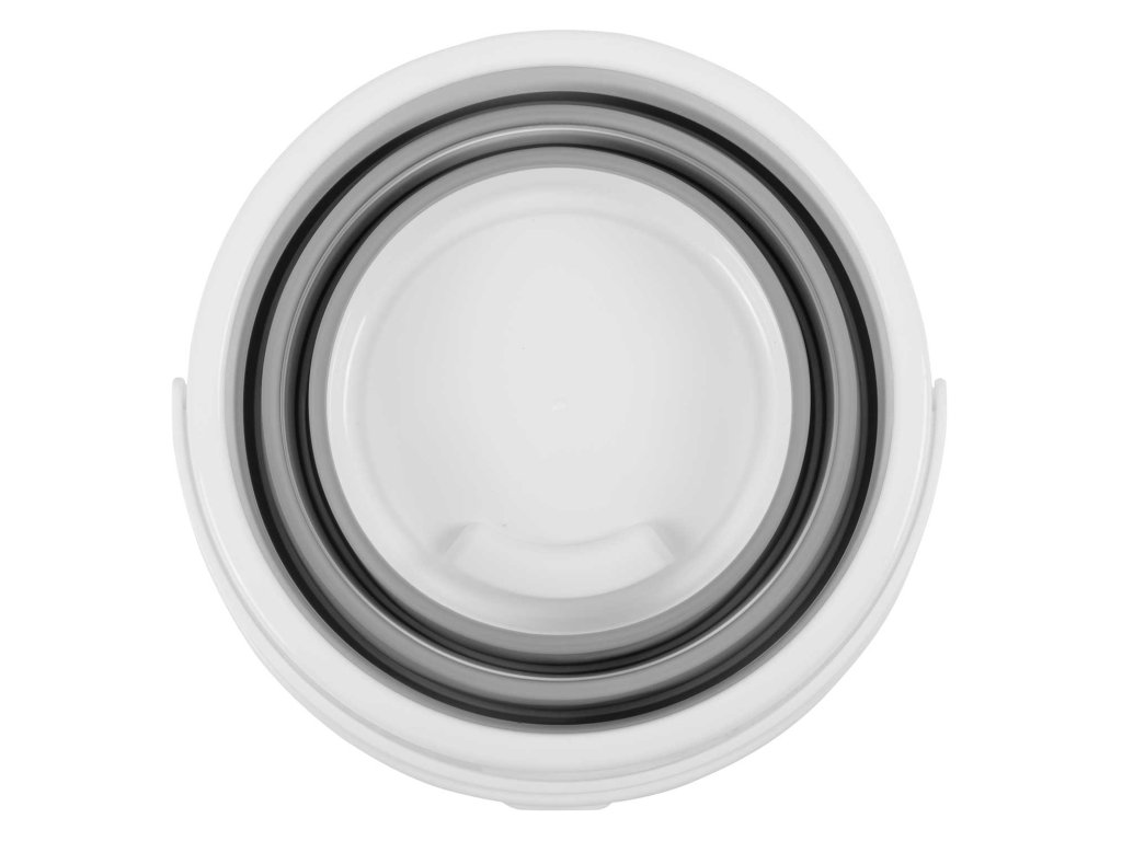 - V zloženem stanju je vedro kompaktno, zavzema minimalno količino prostora. Idealno za shranjevanje v omaro, shrambo ali prtljažnik.