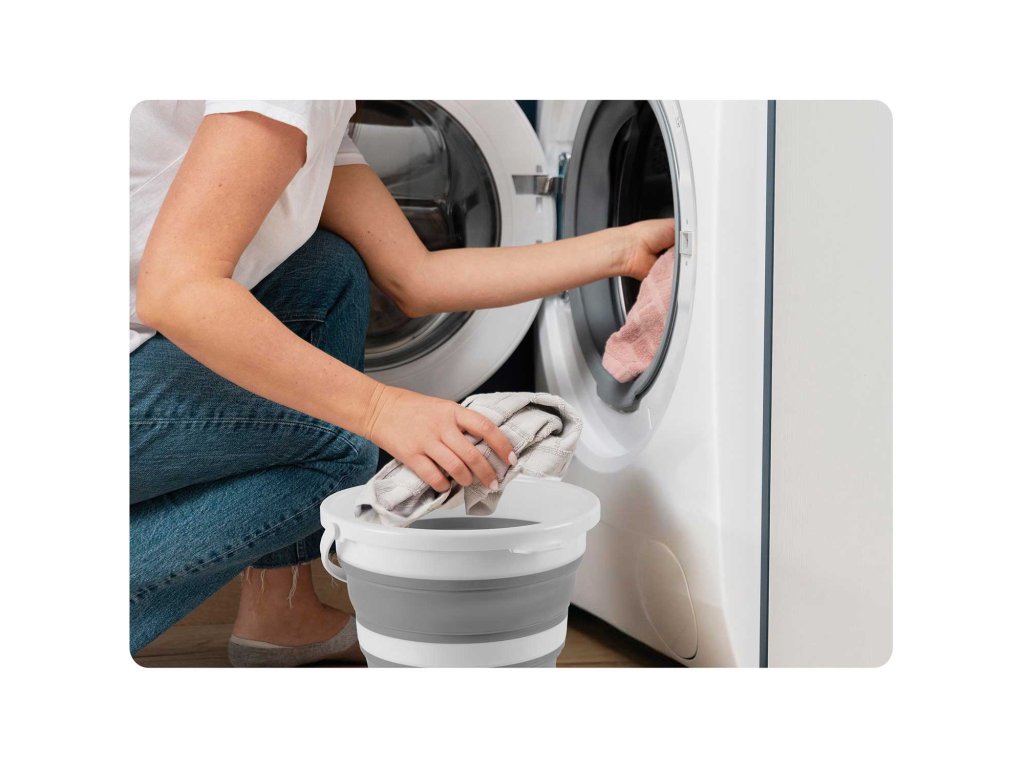 Zložljivo vedro hitro razstavite, napolnite z vodo in čistilnim sredstvom. Velika kapaciteta je idealna za ročno pranje oblačil in nežnega spodnjega perila.