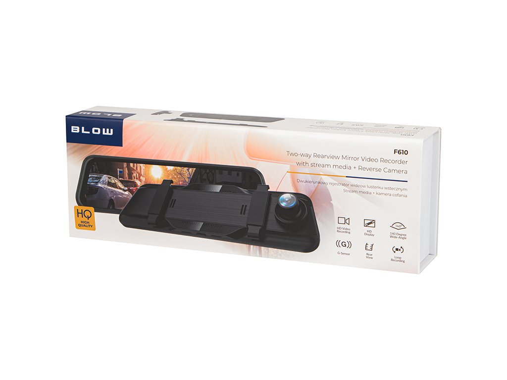 Videorekorder beleži sliko iz sprednjega in zadnjega dela vozila v visoki ločljivosti FHD, kar zagotavlja jasne in podrobne posnetke. Široki koti snemanja 140° omogočajo zajemanje pomembnih podrobnosti, tudi v zahtevnih pogojih. Zadnja kamera povečuje varnost pri parkiranju.