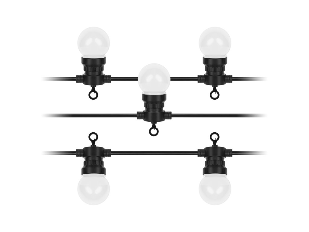 10 žarnic s 5 LED diodami v topli beli barvi, s katerimi je opremljena vrtna girlanda Rebel, zagotavlja nežno, prijetno svetlobo, ki bo osvetlila vsak kotiček vašega vrta ali terase.