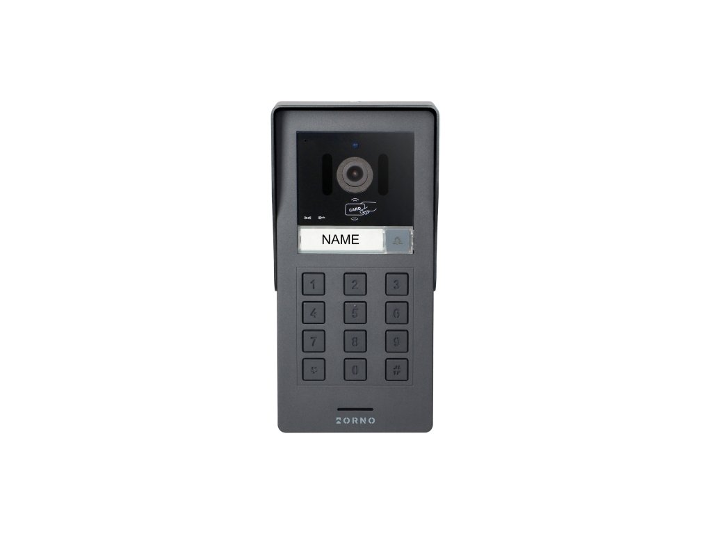 . Zunanja enota iz aluminija ima oceno IP65 in zaščito pred dežjem, kar zagotavlja vzdržljivost. Vgrajena kodna ključavnica ter bralnik RFID kartic in ključev s frekvenco 125 kHz omogočata vstop pooblaščenim osebam, oznaka z imenom pa gostom omogoča, da zlahka najdejo pravo nepremičnino brez nevarnosti zamenjave. Komplet vključuje 5 ključnih oznak.