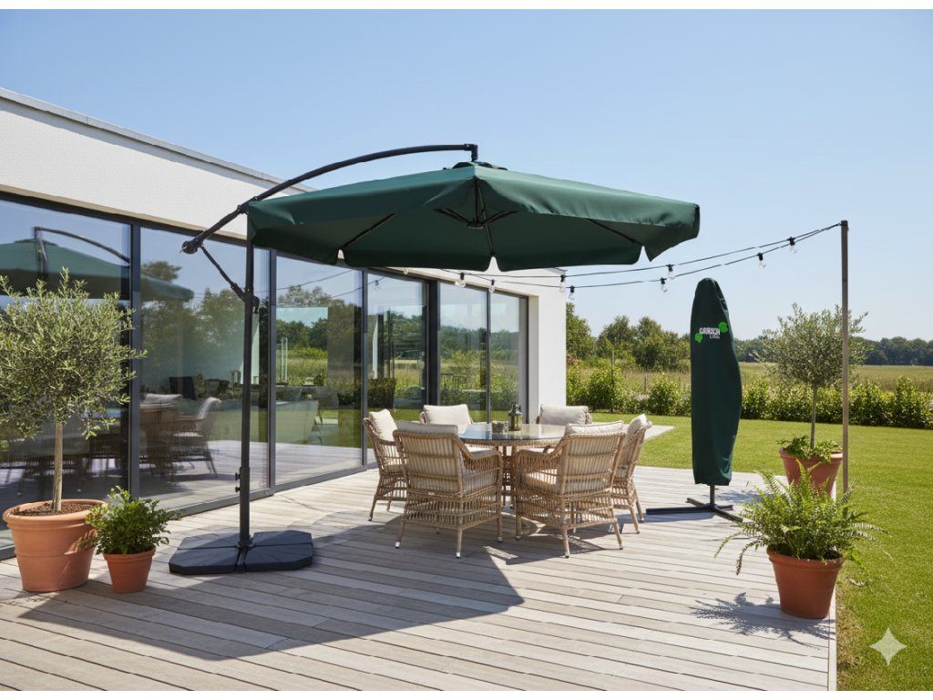 ZUNANJA SONČNIK 3 M ZELEN "BANANA" S PREKRIVALO *2859