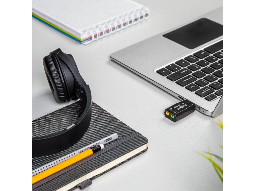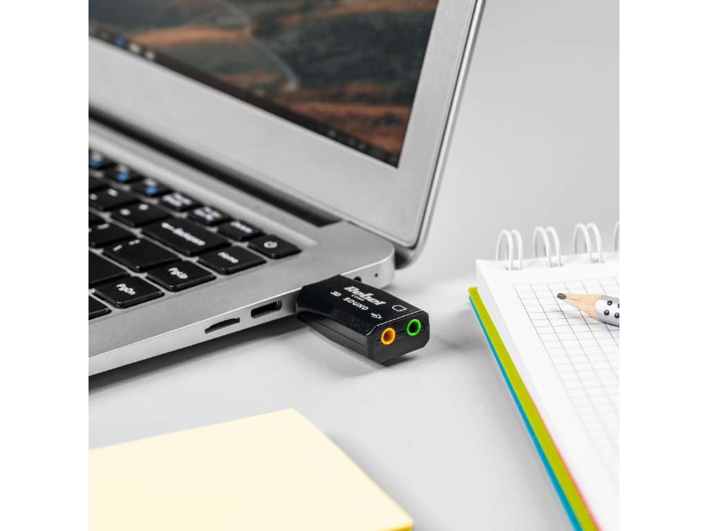 Vas zanima, kako povezati USB zvočno kartico Dodatki serije Rebel Comp ne zahtevajo namestitve gonilnikov – samo ga vstavite v USB vrata in uživajte v čistem in prostorskem zvoku.