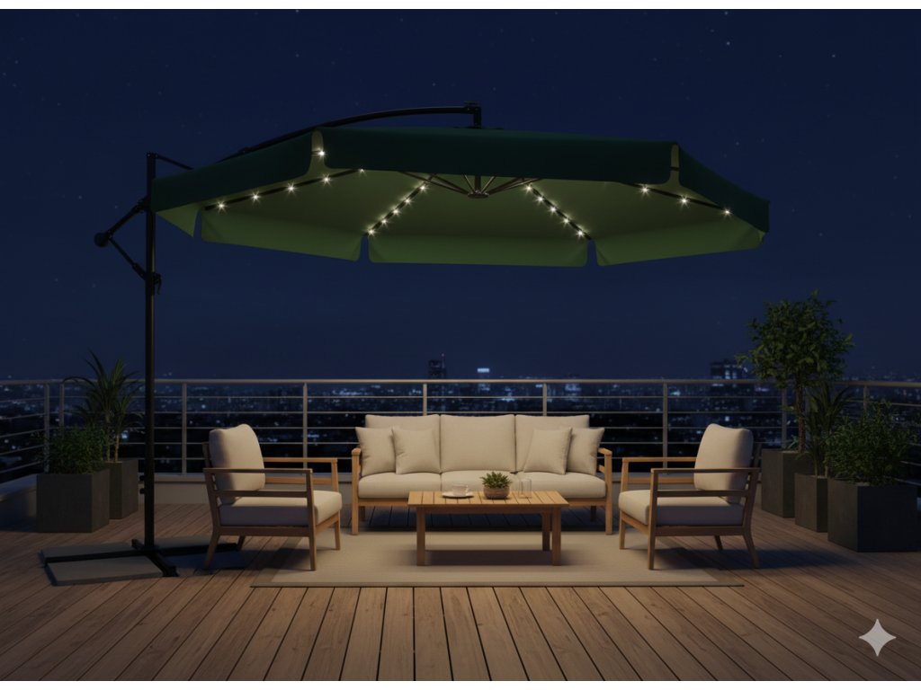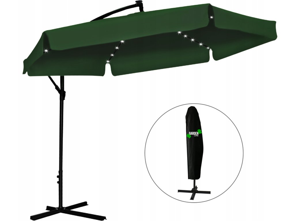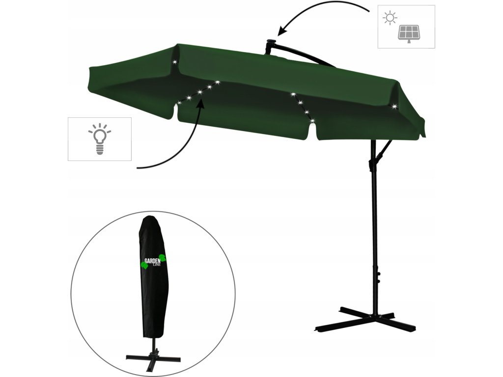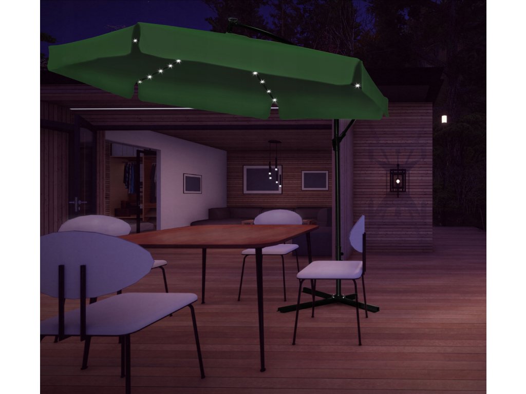 ZUNANJI SONČNIK 3 M ZELEN "BANANA" S LED PREKRIVALO *1510