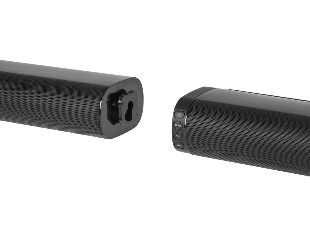 Dimenzije: 800 x 62 x 94 mm (zvočnik), 62 x 415 x 94 mm (ločeni zvočnik, s stojali)