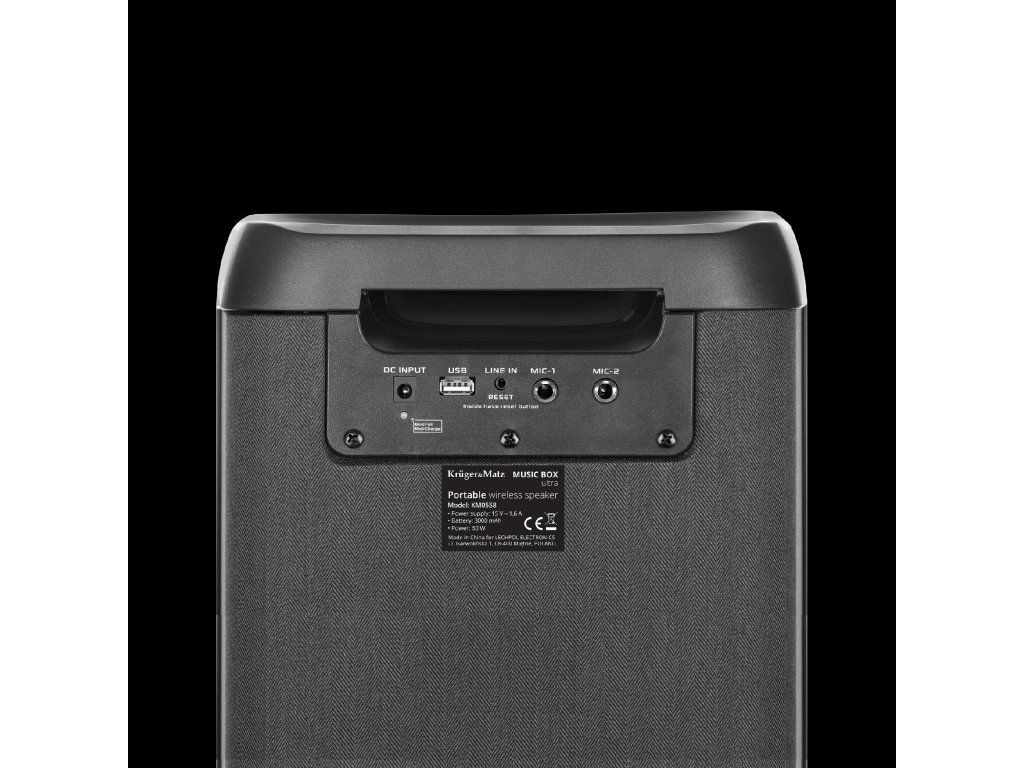 Potrebujete BT zvočnik, ki bo resnično presenetil vaše goste? Izberite model Music Box Ultra! Naprava je opremljena s tremi pretvorniki, ki igrajo z močjo 60 W. Takšna kombinacija bo zagotovila odlično glasbeno ozadje na vaši zabavi!