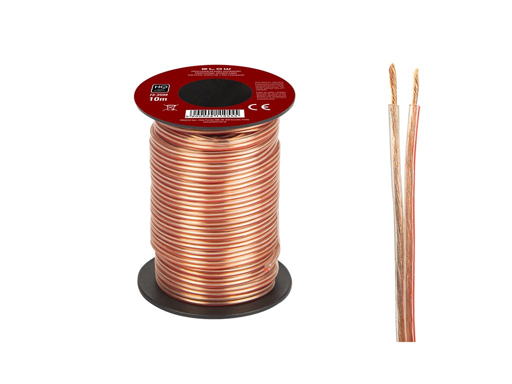 Specifikacije:- Dolžina kabla: 10m- Velikost kabla: 2x 0,22mm- Vrsta kabla: zvočniški- Prenoseni signal: avdio- Barva: prozorna Visokokakovosten zvočniški kabel, namenjen za domačo in profesionalno studijsko ter odrsko uporabo. Kabel odlikuje zanesljivost, velika vzdržljivost in fleksibilnost. Brez težav se lahko uporablja za povezovanje odrske opreme, radijskih sistemov, avdio opreme avtomobilov in domačih kin, večsobnih instalacij.Glavne značilnosti: