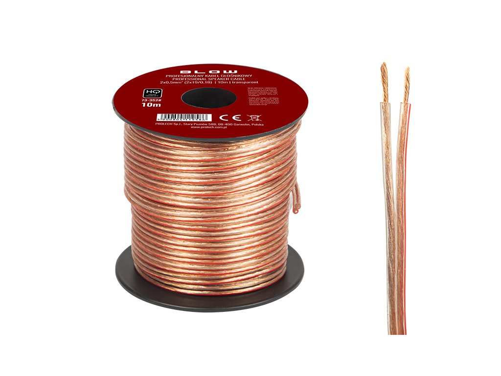 Specifikacija:- Dolžina kabla: 10m- Velikost kabla: 2x 0,50mm- Vrsta kabla: zvočniški- Prenosni signal: avdio- Barva: prozornaVisokokakovosten zvočniški kabel namenjen za domačo in profesionalno studijsko ter odrsko uporabo. Kabel se odlikuje po zanesljivosti, visoki vzdržljivosti in prožnosti. Brez kakršnih koli težav se lahko uporablja za priključitev odrske opreme, radijskih sistemov, CAR-AUDIO opreme in domačega kina, večsobnih instalacij.